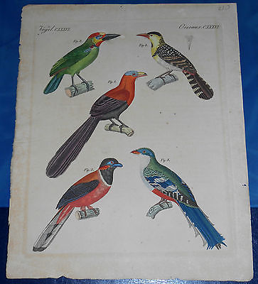 ANTIQUE ENGRAVING BIRDS ORNITHOLOGY MALKOHA, MOUSTACHED PUFFBIRD, TROGON, BARBET