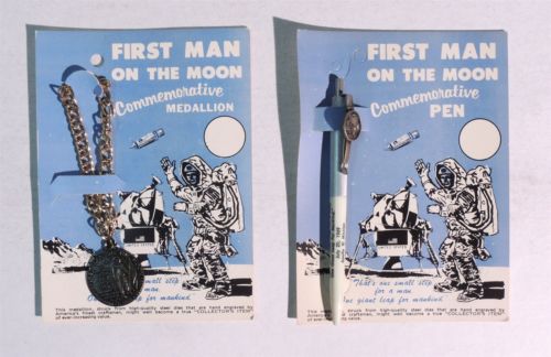 Title (ebay affiliate link): T795. VINTAGE: Steel FIRST MAN ON THE MOON Commemorative Medallion & Pen 1970's