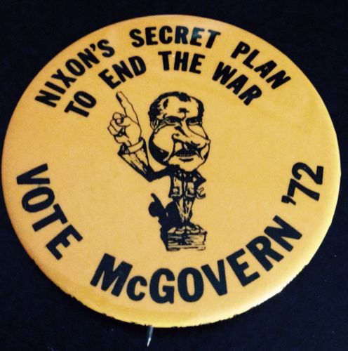 Title (ebay affiliate link): Nixon's Secret Plan To End War Vote McGiovern Pin Pinback Button