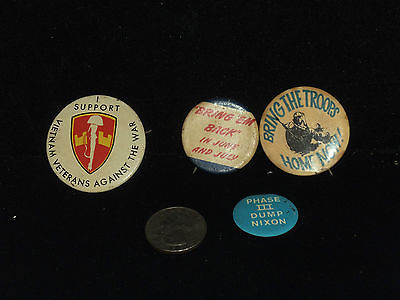 Title (ebay affiliate link): RARE 4 Anti Viet Nam Pinback Buttons, Bring The Troops Home, V Vets against War