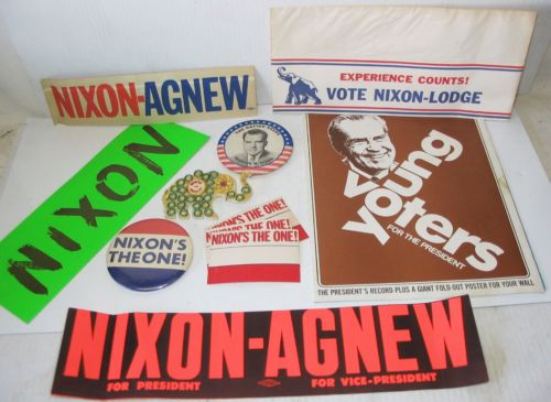 Title (ebay affiliate link): Lot of Richard Nixon Presidential Memorabilia Campaign Buttons, Stickers & Pins