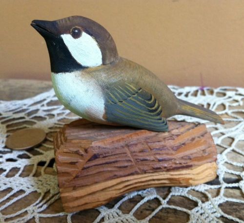 VTG FOLK ART BROWN CAPPED CHICKADEE BIRD WOOD CARVING Fulton KY