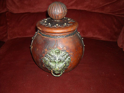 Title (ebay affiliate link): VINTAGE ITALIAN BROWN LEATHER WRAPPED BOTTLE. BOWL/DECANTER. LION HEAD. ITALY