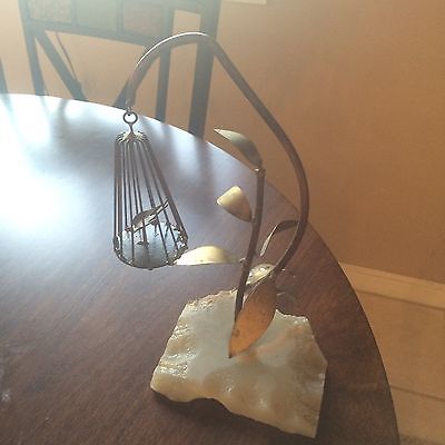 Mid Century Modern Brass Tree With Birdcage and Bird on Marble