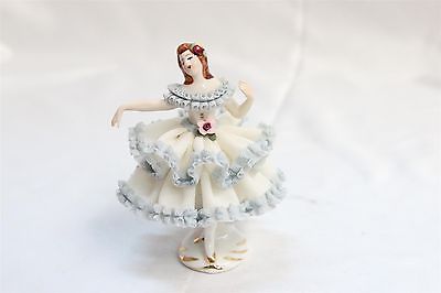 Dresden Art Nouveau Porcelain Figurine Woman Ballerina in Blue Dress
