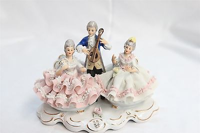 Dresden Design Porcelain Figurine #375 Man and 2 Ladies Playing Mandolin Nouveau