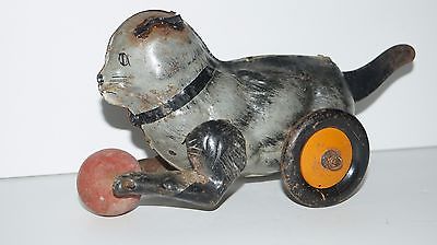 LARGE OLD VINTAGE TIN MARX CRANKTAIL WIND-UP CAT KITTEN CHASE BALL TOY