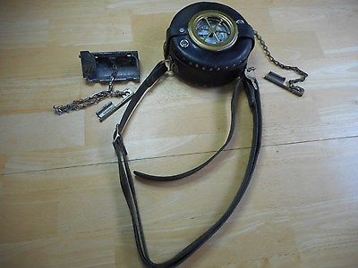Vintage Antique Detex Time Clock w/ Windup Battery Security Keys Leather Case