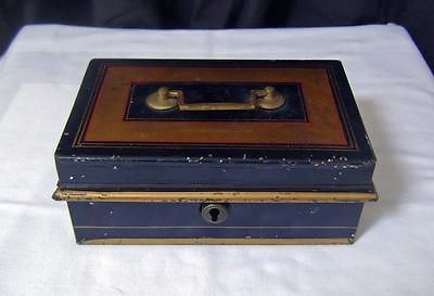 Vintage Tin Toleware Cash Box with Brass Handle and Internal Change Box no Key