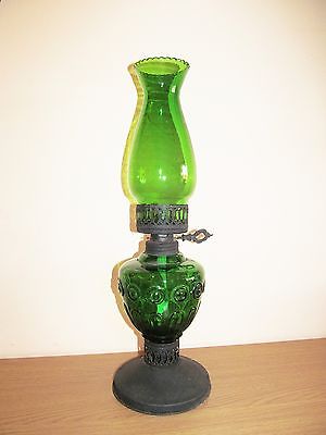 Nice vintage green glass single burner oil lamp with green glass chimney