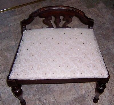 Title (ebay affiliate link): Vintage Antique Beautiful Wooden Vanity Bench 23" x 22" x 16" Recovered Seat