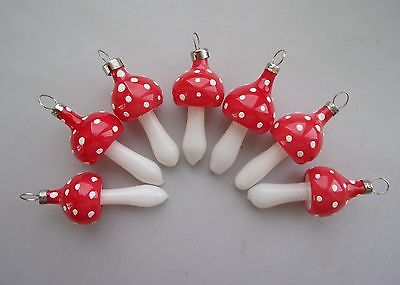 Lot of 7 Vintage BLOWN GLASS MUSHROOMS CHRISTMAS ORNAMENTS