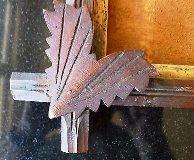 Antique Adirondack Style Wood Picture Frame 1800's Hand Carved Corner Leaves