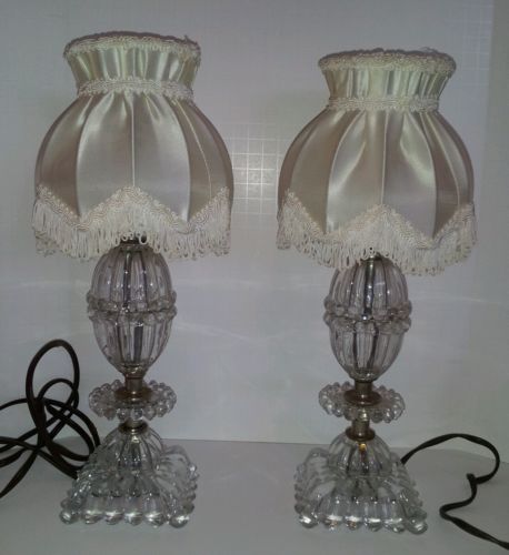 Antique crystal lamps with silk Victorian shades