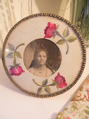 Title (ebay affiliate link): ANTIQUE EXQUISITE ROUND METAL GLASS STITCHED ROSE GOLD FRAME ROUND PHOTO