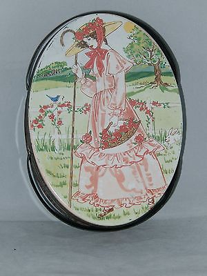Vintage Valleybrook Farms Cookie Oval TIN BOX w Handles Lady Country Scene