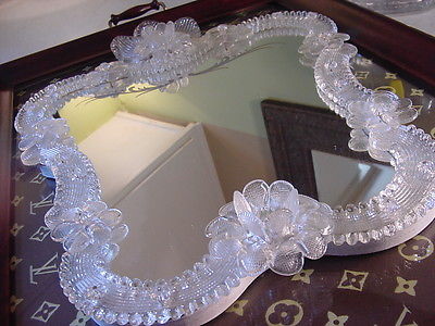 Title (ebay affiliate link): Vintage VENETIAN GLASS Wall Mirror 14"x18" Auth. Made in Italy Flowers Ruffles