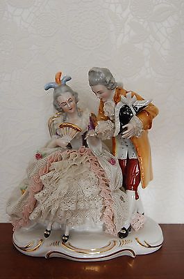 Antique German Carl Scheidig Dresden Lace Porcelain Couple Figurine.