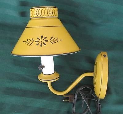 Title (ebay affiliate link): VINTAGE MID CENTURY GOLD TOLEWARE / TOLE WALL SCONCE LIGHT LAMP BLACK TRIM WORKS