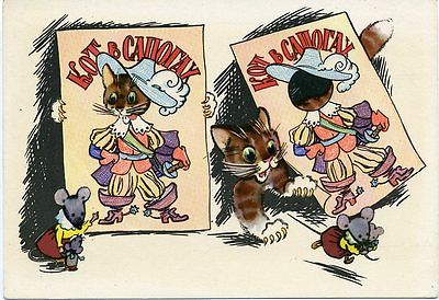 1968 Sly Cat Puss in Boots Mouse Mice Comic Russian Soviet unposted postcard
