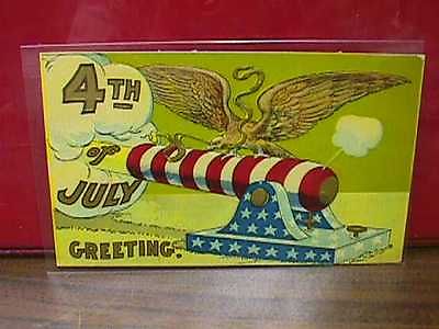 Vintage 4th July Postcard Gold Eagle Colorful Exploding Cannon