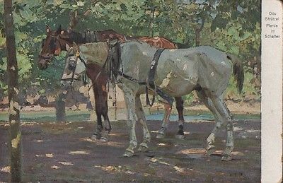 Vintage art postcard of two horses in harness