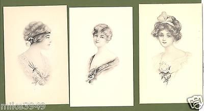 Vintage Lot 3 Beautiful Women Art Nouveau Era Ladies unused VG ** see scans