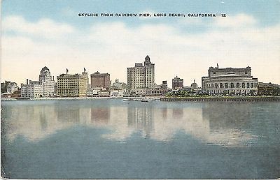 Title (ebay affiliate link): Long Beach, CA, California, Skyline from Rainbow Pier, Linen Postcard PC a5486