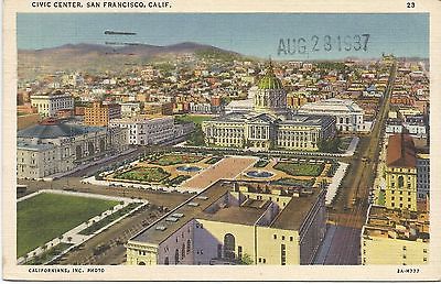 San Francisco, CA, California, Civic Center, 1937 Linen Vintage Postcard a5507