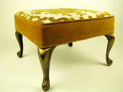 Title (ebay affiliate link): Vintage Gold Brocade Foot Stool Ottoman w/ Brass Legs