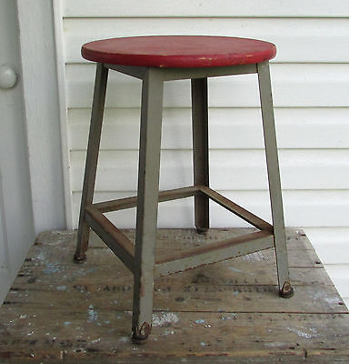 vintage INDUSTRIAL METAL WOOD STOOL MACHINE AGE PLANT STAND PAINTED GARDEN OLD