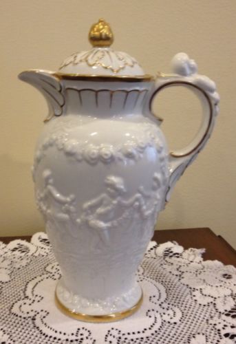 Title (ebay affiliate link): White Porcelain Cherub Flower Coffee Teapot N Crown Mark