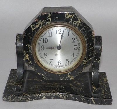 RARE ANTIQUE Desk Clock SESSIONS Wind Up FAUX MARBLE