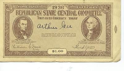 Title (ebay affiliate link): 1936 REPUBLICAN STATE CENTRAL COMMITTEE TICKET ABRAHAM LINCOLN GEORGE WASHINGTON