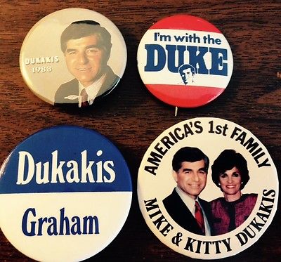 Title (ebay affiliate link): Four Nice Mike Dukakis Presidential Campaign Pin Pinback Buttons