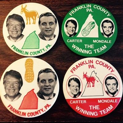 Title (ebay affiliate link): Four Larger Carter/Mondale Presidential Campaign Pin Pinback Buttons