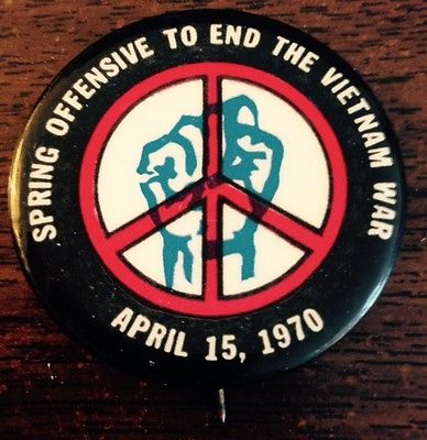 Title (ebay affiliate link): April 15, 1970 Spring Offensive to End the Vietnam War Cause Pinback Button