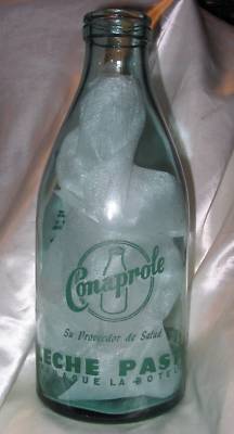 Conaprole Milk Bottle Green Glass & Pyro Uruguay Qt