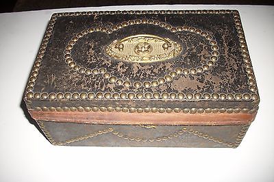 Brass Studded Document Letter Box Leather Over Wood Primitive Estate Fresh Find