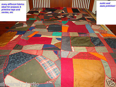 ANTIQUE CRAZY QUILT-PRIMITIVE HEAVY FABRIC FOLK ART-PROJECTS CUTTER ? ETC