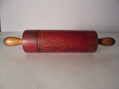Title (ebay affiliate link): Antique Primitive Hollow Miniature Rolling Pin Blue Wood Ball Inside Child's Toy