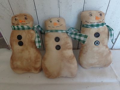 3 Primitive Grungy Snowman Snowmen Ornies Bowl Fillers Christmas Handmade Winter