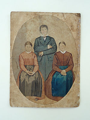 Title (ebay affiliate link): Circa 1850s PRIMITIVE Folk Art Portrait WATERCOLOR - Brother & 2 Sisters