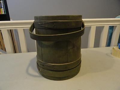 Antique WOOD FIRKIN Sugar BUCKET with HANDLE No Lid RUSTIC GREEN