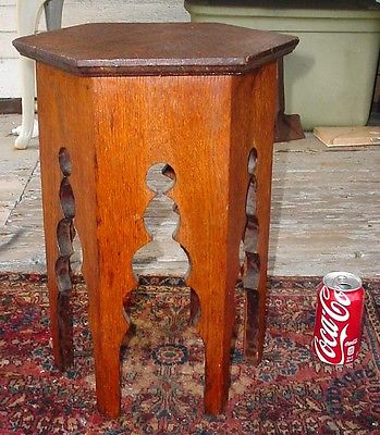 Title (ebay affiliate link): ANTIQUE CARVED MISSION ERA OCTAGON OAK ARTS & CRAFTS TABORET PLANT STAND N/R