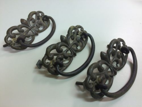 Title (ebay affiliate link): LOT A - 3 VINTAGE ANTIQUE BRASS DRESSER DRAWER PULLS FURNITURE HARDWARE