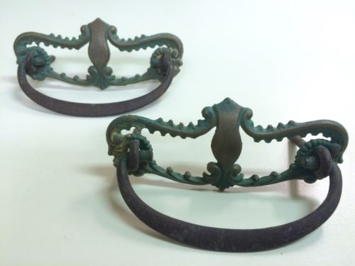 Title (ebay affiliate link): LOT B - 2 VINTAGE ANTIQUE BRASS DRESSER DRAWER PULLS FURNITURE HARDWARE