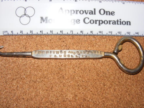 Title (ebay affiliate link): Antique Adv. Northside Furniture Hardware Farrell PA. Button Hook Bottle Opener