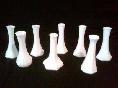 LOT of 8 Milk Glass Bud Vases Assorted Maker - 6" Tall