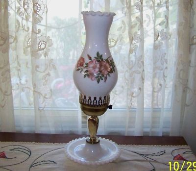 Vintage Milk Glass Table 0r Wall Lamp Light & Chimney